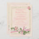 Ein weicher, cremefarbener Hintergrund mit einem Rahmen aus "Marmor" ist mit einem Blumenspray aus rosa und weißen Blume geschmückt. Er ist mit rosa und grünen Bändern und einem Bogen versehen. Dies ist eine koordinierende Einladung zum Floral Taufprogramm für den griechisch-orthodoxen Glauben.