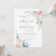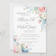 Rosa und blaue Blumenarrangements auf weißem Hintergrund. Eine perfekte Einladung für jede Jahreszeit. Die Aquarellblüten sind wunderschön. Klasse & schick.