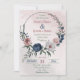 Schöne botanische Hochzeitseinladung mit rosafarbenen, weißen und marineblauen Blumen mit grünen Blätter auf einem grünen Kreis, die einen hübschen romantischen Kranz bilden. Es eignet sich sowohl für Hochzeiten als auch für Verlobungen. Für weitere Informationen klicken Sie bitte auf die obige Sammlung oder kontaktieren Sie mich.