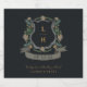 Elegantes und rustikales, handgemaltes Aquarelldesign von Shelby Allison mit einem Familienwappen-Schild und Monogramm, umgeben von faszinierenden Blume und Blattdetails.
