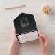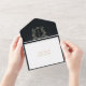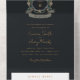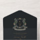 Elegantes und rustikales, handgemaltes Aquarelldesign von Shelby Allison mit einem Familienwappen-Schild und Monogramm, umgeben von faszinierenden Blume und Blattdetails.