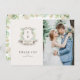 Elegantes und rustikales, handgemaltes Aquarelldesign von Shelby Allison mit einem Familienwappen-Schild und Monogramm, umgeben von faszinierenden Blume und Blattdetails.