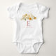Ein süßes und elegantes, florales Monogramm-Babyaoverall mit einem rosafarbenen Anfangsbuchstaben, zarten cremefarbenen und goldenen Blumen sowie dem personalisierten Namen des Babys darunter. Perfekt für Neugeborenenfotos, Willkommens-Outfits, Babyshower-Geschenke oder Alltagsbekleidung. Dieses Design passt zur gesamten Vintage-Floral-Carriage-Kollektion. Der Name und der Anfangsbuchstabe können leicht angepasst werden, um ein bedeutungsvolles Erinnerungsstück zu schaffen.