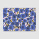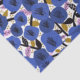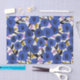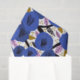 Große blaue Blume vorne mit Details in Rosa und Blattgold. Modern und auffällig.