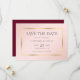 Minimalistische, aber elegante Bordeaux-, Schwarz- und Goldhochzeit speichern die Dattelkarten. Matching-Elemente verfügbar.