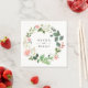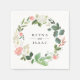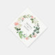 Eleganter Gartenkranz aus Blume und Blattwerk in schicken Weiß-, Rose-, Rosa- und Grüntönen, personalisierte Papierservietten. Text Schriftart Stil und Farbe können angepasst werden. Entworfen, um unsere schöne Gartenhochzeit-Kollektion zu ergänzen.