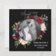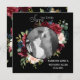 Schön und elegant, bordeauxfarbene Blume auf schwarzem Hintergrund. Absolut atemberaubend. Fügen Sie Ihr Foto der Verlobung, umgeben von einem wunderschönen Blumenkranz, zu dieser wunderschönen Save the Date Karte hinzu. So elegant und romantisch. Ideal für Ihren besonderen Tag. Viel Spaß!