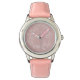 Kinderuhr aus Edelstahl mit rosa Lederarmband