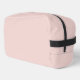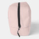 Erstellen Sie Ihre eigene personalisierte oder monogrammatikalische Toilettentasche. Passen Sie die dunkelbraune Farbe des modernen eleganten, handgeschriebenen Kalligraphieskriptes an. Ändern Sie die hellrosa Farbe der Hintergrund rot, um Ihre Hochzeitsfarben zu einem Hochzeitsgeschenk zu erstellen.