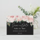 Dieses schwarz-schwarze Flachbild-Design mit blühenden, schwarzen, flachen Save the Date bietet einen schönen, eleganten Hintergrund in Schwarz oder Weiß mit schlichter moderner Typografie und eleganter Kalligraphie, um einen ausgeklügelten Ton für jeden Veranstaltungsstil zu Set zu bringen. Jedes Produkt ist mit wunderschönen, rosa Rosen mit üppigen Rosen und pfirsichfarbenen und elfenbeinigen Hydrangeas, die mit üppigen Eukalyptus- und grünen Blattdetails, zusammen mit zeitlosen geometrischen goldenen Rahmen für ein luxuriöses Aussehen. Diese koordinierende Kollektion wird gemischt und für eine mühelose, personalisierte Traumataästhetik für eine breite Palette von lässigen bis formalen Stilen. Für mehr Koordination ist dieses Design auch in pastellrosa und marineblau erhältlich. Wie bei allen unseren Designs, wenn Sie Fragen oder besondere Wünsche haben, frag einfach.