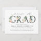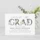 Stilvolle, elegante Graduiertenfeier mit karkohlegrauen Buchstaben mit blüten Aquarellfarben und grünen Blattakzenten. Personalisieren Sie die Einladungen der blumengeschichtlichen Graduiertengruppe, indem Sie den Namen und das Party des Absolventen hinzufügen. Auf der Rückseite der Einladungen befindet sich ein rot-rosa Aquarellhintergrund.