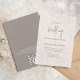 Erzählen Sie Ihren großen Tag mit diesen blauen Einladungen, die elegante Blumendetails, eine anmutige Kalligraphie und eine raffinierte Typografie für einen klassischen formalen Charme verbinden. Dieses vielseitige Template wurde mit stilvoller Eleganz entworfen und bietet den Anzügen Frühjahr, Herbst, Winter und Hochzeiten. Mit einer eingebauten QR-Code-Vorlage macht es das Teilen Ihrer Hochzeitswebsite oder Ihrer UAWG einfach und modern. Personalisieren Sie Ihre Einladung heute für eine zeitlose und technisch versierte Hochzeitsankündigung.