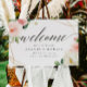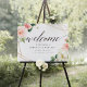 hochzeitsempfangbegrüßungszeichenhochzeitszeichengeometrischesblütenfarbenes begrüßungsschildschildervorlage
