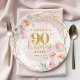 Blush Floral Gold Glitter Elegant 90th Birthday Pappteller
