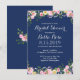 Blush Floral Navy Blue Brautparty Einladung