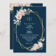Blush Floral Navy einfache Monogram Details Hochze Einladung