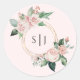 Blush Floral Pink Monogram Wedcker Runder Aufkleber