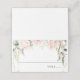 Escortkarten mit Zweigen von Grünpflanzen und Blütenfloralen. Schreib die Namen und Tischnummern der Gäste ein.