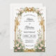 This romantic wedding invitation features an ornate blush and gold floral arch inspired by European garden estates and timeless old world elegance. Soft roses, trailing greenery, and antique gold detailing frame your wedding details in a way that feels graceful, refined, and effortlessly luxurious. Designed for couples who appreciate classic beauty with a romantic touch, this invitation creates a beautiful first impression while remaining easy to personalize for your special day. The artwork coordinates seamlessly with matching pieces in the collection, making it simple to create a cohesive wedding suite that feels thoughtful and beautifully curated from start to finish.