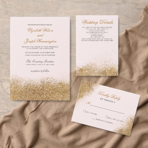 FAUX Glitter Dust Blush & gold Invitation SuiteDesignt von Maria G