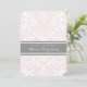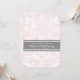 Personalisierte Baby Dusche Einladungen in elegantem und modernem hellpastellfarbenem Rosa, dunkelkohlegrauem und weißem klassischem und Vintagem Blumendamastmuster. Anpassbar mit Ihrem Text, kontaktieren Sie uns, um eine Farbänderung anzufordern.