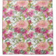 Eleganter, stilvoller, niedlicher Duschvorhang mit rosa, rosa und hellrosa Blume, weißes Blätter mit Salbei-Grün auf weißem Hintergrund.
