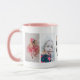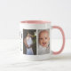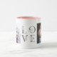 Schöne, rot-rosa Blume in Aquarellfarben mit fett-grauen "LIEBE" Buchstaben, 4 Foto Emaille Tasse.