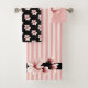 Das Set ist in Schwarz und Weiß gehalten und mit Streifen und hübschen Farbbildern von Magnolienblüten gestaltet. Dieses hübsche Badetuch-Set bietet eine passende Wohngestaltung.