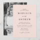Minimalistische, moderne Hochzeitseinladung mit ihren Hochzeitsdetails in schwarzer Schrift mit Akzenten aus Kalligraphie mit einem Hintergrund aus der Blüte. Die Rückseite der trendigen Hochzeitseinladung zeigt Ihr Foto der vertikalen Verlobung. Entworfen, um mit unserer Hochzeitskollektion "Moderne Elegance" zu koordinieren.
