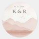 Blush Mountain Range Landscape Wedding Monogram Runder Aufkleber