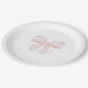 Ein moderner Brautparty-Papier-Teller mit überdimensionalem, blütenfarbigem Wasserbogen im Hintergrund mit Duschdetails überlagert.