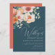 Blush Peach Coral Aquamarin Blue Floral Hochzeit Einladung