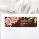Redaktioneller Text Hochzeitsadresse Rücksendeetikett mit rustikalen großen rosafarbenen Blume und schimmerndem Lichter auf dunkelbraunem Holzhintergrund. Ideal für den Sommer | Herbstfall | elegant floral | Garten | rustikales Land | Hochzeit im Garten im Freien.