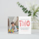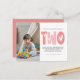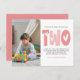 Modernes, einfaches und elegantes Mädchen zweiten Geburtstag danke Postcard. Design mit rot-rosa Typografie zwei , danke Nachricht und ein Foto.