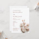 This contemporary wedding invitation features blush pink white 3 dimensional boho wildflowers on a white background.