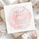 This thank you card features a painted watercolor floral petal in blush pink, accented with faux gold glitter dots. For more advanced customization of this design, please click the "Design tool" button. Matching items are also available.