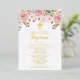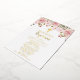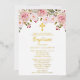 Elegante Aquarellfarben Rosa Blütenbaby Taufe mit Blumenmotiven in verschiedenen Rosa- bis Lilatönen mit olivgrün Blätter in einem Top-Tab-Bouquet, das die Details Ihres süßen Babys umgibt. Ein dreieckiges Kreuz befindet sich unterhalb des Blumenmusters, und auf der Rückseite befindet sich ein dunkelrosa Marmoraussehen mit subtilem Hintergrund. Alle Texte und Kreuze sind in Goldfolie. Dieses zusammengesetzte Blumendesign von Holiday Hearts Designs (Rechte vorbehalten) ist bereit für Sie zu personalisieren.