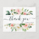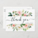 Diese Hochzeit dankt Ihnen Postcard mit gemalten Aquarellfarben-Blume in Rosa, Weiß und Grün. Für eine weiter gehende Anpassung dieses Designs klicken Sie bitte auf den Link "Weitere Anpassung". Matching-Elemente sind ebenfalls verfügbar.