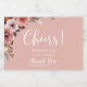 Freuen Sie sich auf einen Drink und einen Wein! Stilvolles Etikett mit Blumenrot-Details an einer Ecke und Verwendung moderner Handschrift Kalligraphie. Romantische hellrot-rosa Hintergrundfarbe. Personalisieren Sie mit Ihren eigenen Informationen. Möglichkeit zur weiteren Anpassung von Text.