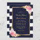 Blush Pink Bloral Navy Blau Streifen Hochzeit Einladung