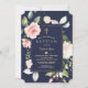 Blush Pink Bloral Navy Blue Gold Cross Taufe Einladung