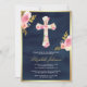 Blush Pink Bloral Navy Blue Gold Taufe Einladung