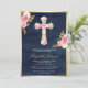 Erleben Sie Ihren Aufenthalt mit dieser eleganten Taufe, die Sie mit schönen rosa Blume und einem eleganten Blumenkreuz einlädt. Fügen Sie einfach Ihre Veranstaltungsdetails zu dieser einfach zu bedienenden Vorlage hinzu, um sie zu einer einmaligen Einladung zu machen.