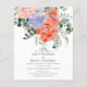 Blush Pink & Blue Watercolor Blumenkolorale Einladungen mit einem herrlichen Blumenstrauß in Rosa, Blau und Weiß, Aquarellfarben mit Eukalyptus und Grün auf weißem Hintergrund. Unten finden Sie Ihre personalisierten Hochzeitsinformationen. Einfach personalisieren, indem Sie den Text in den dafür vorgesehenen Textfeldern bearbeiten. Entwickelt für Sie von ©Evco Studio www.zazzle.com/store/evcostudio