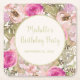 Blush rosa Aquarell Blütenfarben und Salbei Grün Blätter individuelle Geburtstagsfeier Untersetzer personalisiert mit einem Namen und Party Datum.