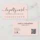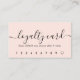 Belohnen Sie Ihre Kunden stilvoll mit unserer personalisiert-minimalistischen Treuekarte, die in einer raffinierten Rosa-Rosa-Farbe gestaltet wurde. An der Vorderseite steht die elegante Rubrik "Loyalty Card" in moderner Kalligrafie, gefolgt von Platz für Ihr exklusives Werbeangebot. Fügen Sie auf der Rückseite Ihre Kontaktdaten hinzu, um Ihren Kunden einen einfachen Zugang zu gewährleisten. Diese Karte eignet sich hervorragend für Haarstylisten, Make-up-Künstler, Wellness-Center-Profis und Schönheitssalons, die dauerhafte Beziehungen für Kunden entwickeln möchten. Steigern Sie Ihr Geschäft mit dieser schicken Treuekarte.