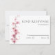 An elegant blush pink cherry blossom wedding RSVP card with QR code featuring Japanese sakura watercolor blooms perfect for spring and summer celebrations.