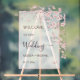 Blush pink cherry blossom floral transparent wedding welcome reception board.