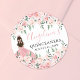 Fügen Sie Ihren Gastgeschenken, Kerzen, Platzierungen, Umschlagsschließungen und noch mehr eine skurrile und elegante Touch hinzu, mit diesem charmanten Rundaufkleber-Design! Es ist im Blumendesign in Rosa erbaut und präsentiert zarte Aquarellfarben in sanften Rosatönen, gepaart mit üppig grünen Blätter. Den links fügt ein Mädchen in einem glitzernden rosa Gewand mit einem glitzernden rosa Tiara auf ihrem Kopf eine reizvolle, regale Touch hinzu. Auf der rechten Seite bietet ein individualisierbarer Text in einem Mix aus klassischer Serife und eleganten Script-Schriftart einen unterhaltsamen und dennoch raffinierten Flair für Ihre Quinceañera-Feier. Dieser Aufkleber ist perfekt geeignet, um allen Party-Details eine einheitliche, persönliche Touch hinzuzufügen. Er ermöglicht auch die Anpassung von Schriftart-Farben und Hintergrund an Ihr Thema.