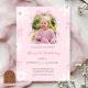 Blush Pink Daisy Bow Girl 1st Birthday with photo Einladung